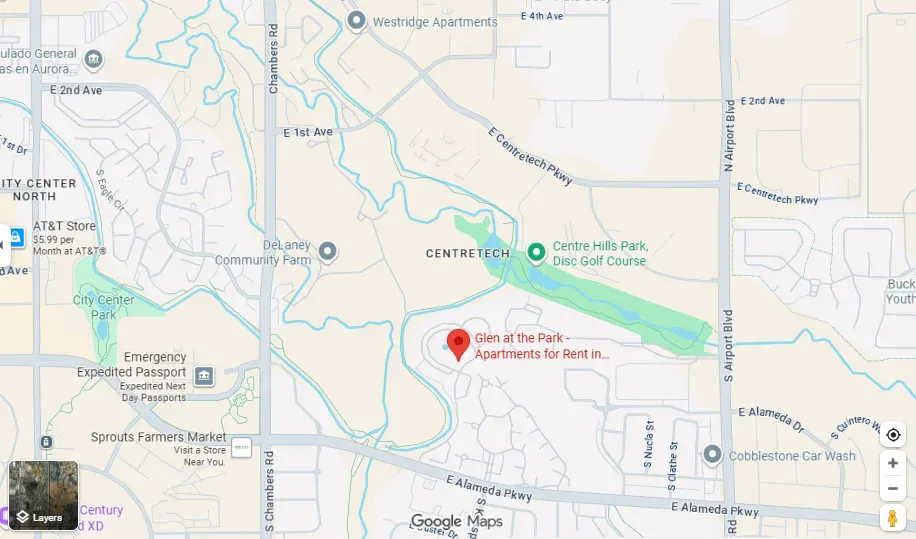 Glen at the Park sits at the corner of East Alameda Parkway and South Chambers Road in Aurora, Colorado—about 3.5 miles from Buckley Space Force Base‘s main gate. That’s roughly an 8-minute drive on normal traffic days. For military families, defense contractors, or anyone working on base, this proximity cuts out the commute stress that comes with living farther out in the metro area. Choosing Aurora apartments for rent near the base not only saves valuable time but also creates more opportunities to spend time with loved ones or enjoy the amenities of your community.