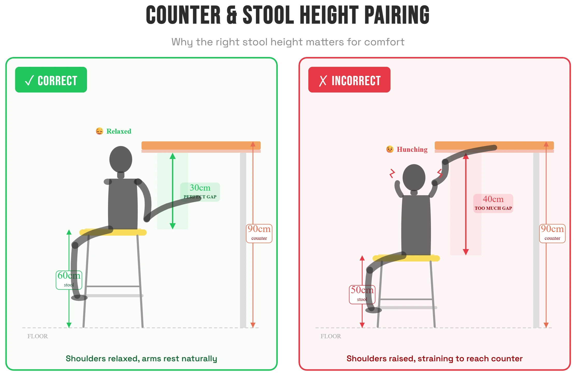 Standard Kitchen Counters (90cm) Need a 60–65cm Seat