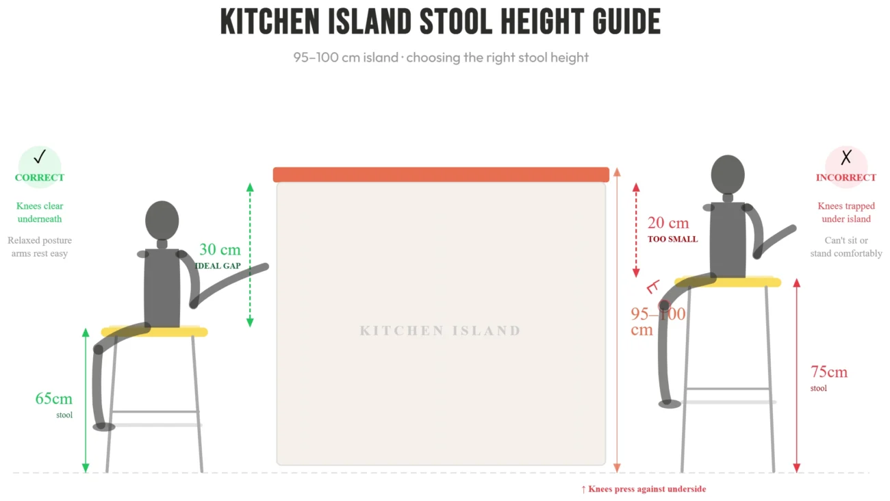 Raised Kitchen Islands (95–100cm) Need a 65–70cm Seat