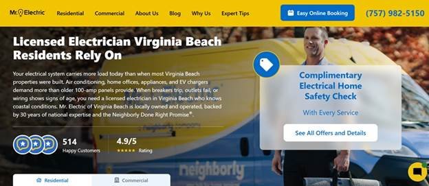 Mr. ElectricYesVirginia Beach and nearby areas4.9 stars on GoogleNational brand standards and consistent service