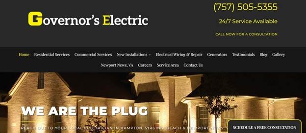 Governor’s ElectricYesVirginia Beach and surrounding areas4.9 stars on GoogleStrong local reputation and clear communication
