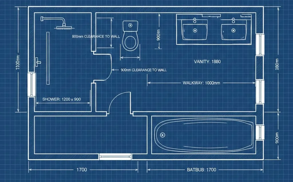 900mm walkways work for most people. Showers need 900×900mm minimum—bigger if you want room to move or accessibility matters. Vanity height lands between 750mm and 900mm, depending on who’s using it. Mirrors at eye level. Towel rails that don’t smack into doors.