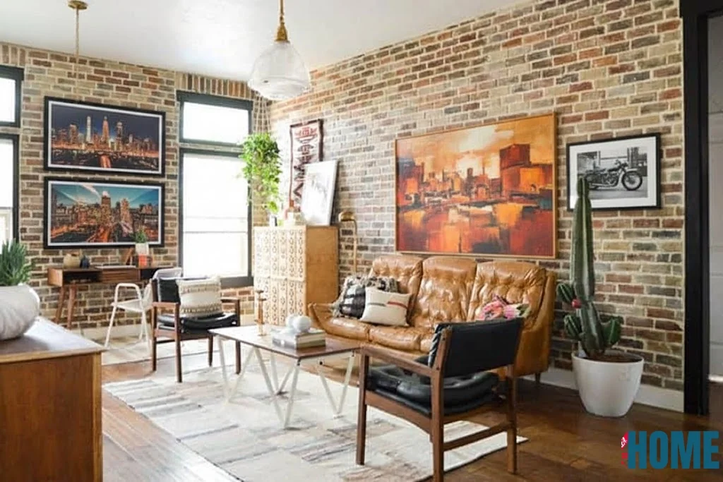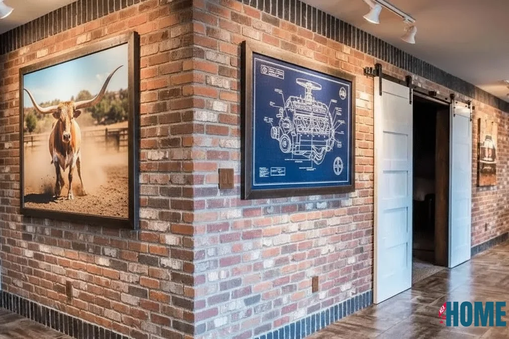 Thrift gems: Hunt flea markets for frames; DIY art with canvas and paints. Balance is key—group in odd numbers for natural flow. For beauty, add textiles like macramé hangings for softness against the brick’s edge.