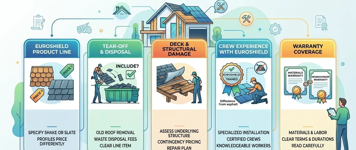 - Which EuroShield product line they’re quoting (shake vs slate profiles price differently)